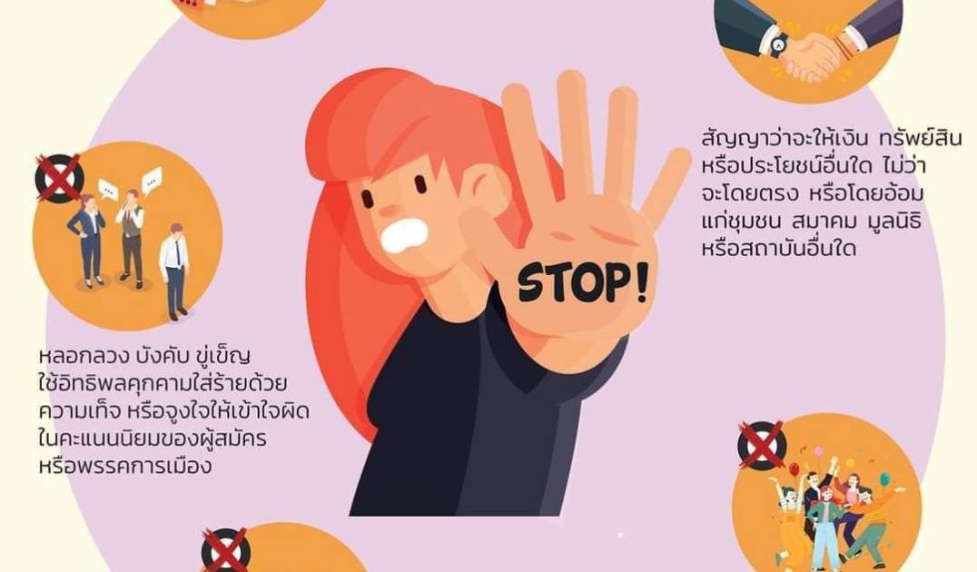 ลักษณะต้องห้ามในการหาเสียงเลือกตั้ง หากพี่น้องประชาชนไม่ได้รับความสะดวก หรือพบเห็นการกระทำความผิด โปรดแจ้งสายด่วน 191 หรือ1599 หรือ สายด่วน กกต.1444 หรือสถานีตำรวจในพื้นที่ ได้ตลอด 24 ชั่วโมง สำนักงานตำรวจแห่งชาติพร้อมที่จะดูแล บำบัดทุกข์ บำรุงสุข ให้กับประชาชนในทุกภารกิจ