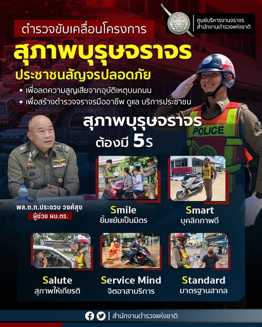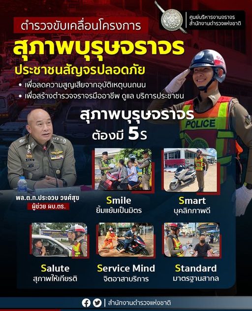 พล.ต.ท.ประจวบ วงศ์สุข ผู้ช่วย ผบ.ตร. ในฐานะ รองผู้อำนวยการศูนย์บริหารงานจราจร สำนักงานตำรวจแห่งชาติ ( รอง ผอ.ศจร.ตร. ) เปิดเผยว่า ตามนโยบายของรัฐบาล พล.อ.ประยุทธ์ จันทร์โอชา นายกรัฐมนตรีและรัฐมนตรีว่าการกระทรวงกลาโหม และ พล.อ.ประวิตร วงษ์สุวรรณ รองนายกรัฐมนตรี ที่ให้ความสำคัญในการอำนวยความสะดวกการจราจร การป้องกัน และลดอุบัติเหตุ ตลอดจนการเสียชีวิตและบาดเจ็บบนท้องถนน สร้างความปลอดภัยในชีวิตและทรัพย์สินแก่ประชาชนและสังคม นั้น สำนักงานตำรวจแห่งชาติ ภายใต้การนำของ พล.ต.อ.ดำรงศักดิ์ กิตติประภัสร์ ผบ.ตร. และ พล.ต.อ.รอย อิงคไพโรจน์ รอง ผบ.ตร. ได้นำนโยบายรัฐบาลมาสู่การปฏิบัติ โดยได้จัดทำโครงการ “สุภาพบุรุษจราจร ประชาชนสัญจรปลอดภัย”