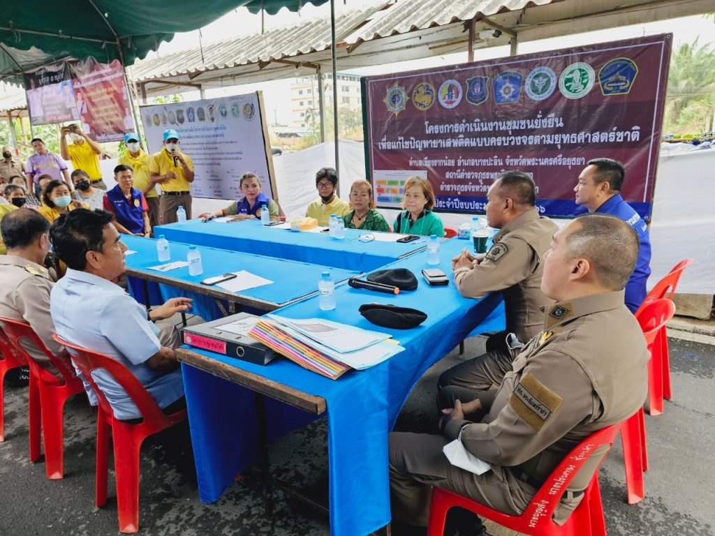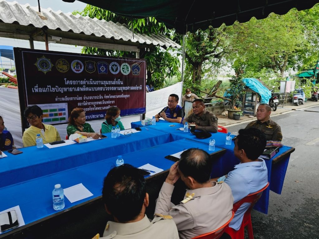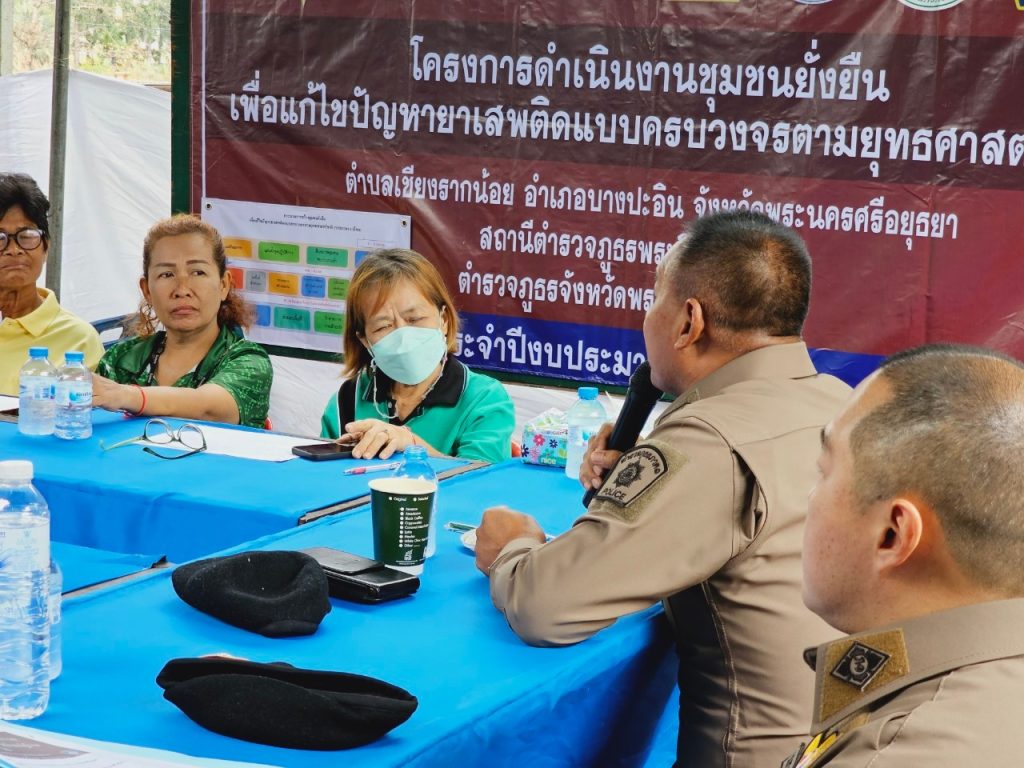พ.ต.อ.ชนันท์ เปรมปลื้มจิตต์ ผกก.สภ.พระอินทร์ราชา ได้ชี้แจงถึงวัตถุประสงค์ของโครงการ และผลการปฏิบัติค้นหาผู้ค้า ผู้เสพ ผู้ติดยา นำมาสู่การบำบัด รักษา การทำกิจกรรมร่วมกับชุมชน สอบถามปัญหาภายในชุมชน เพื่อแก้ไขปัญหายาเสพติดทุกมิติอย่างเป็นระบบ โดยมุ่งการแก้ไขปัญหาแบบบูรณาการกับทุกภาคส่วน สร้างความร่วมมือและการมีส่วนร่วมระหว่างหน่วยงานกับประชาชน อันจะทำให้การป้องกันปราบปรามอาชญากรรมและยาเสพติดในหมู่บ้าน ชุมชนเป็นไปอย่างมีประสิทธิภาพ