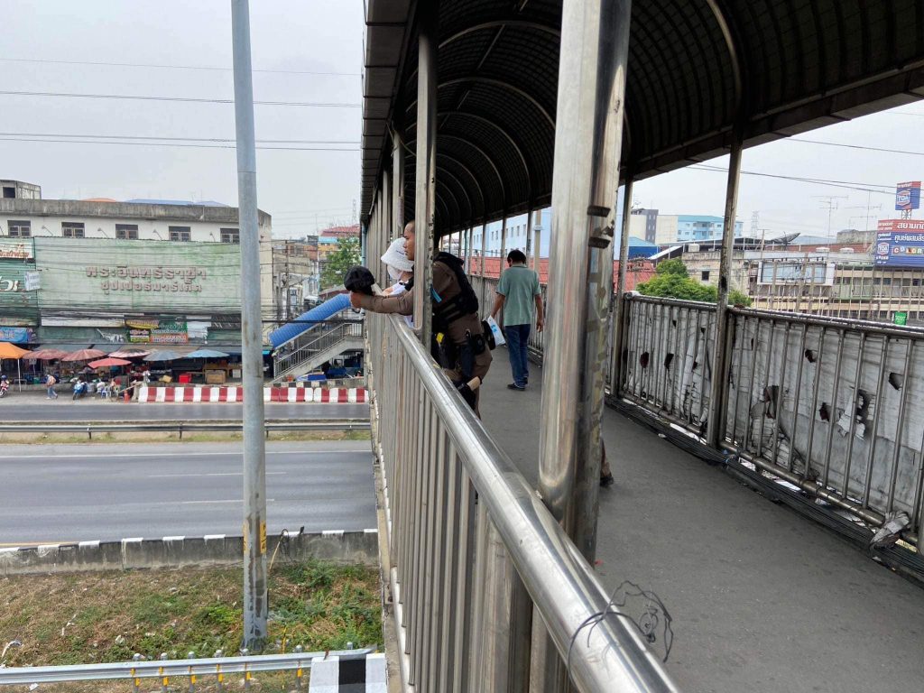 วันศุกร์ที่ 7 เมษายน 2566 สะพานลอยหน้าตลาดพระอินทร์ ต.เชียงรากน้อย อ.บางปะอิน จ.พระนครศรีอยุธยา