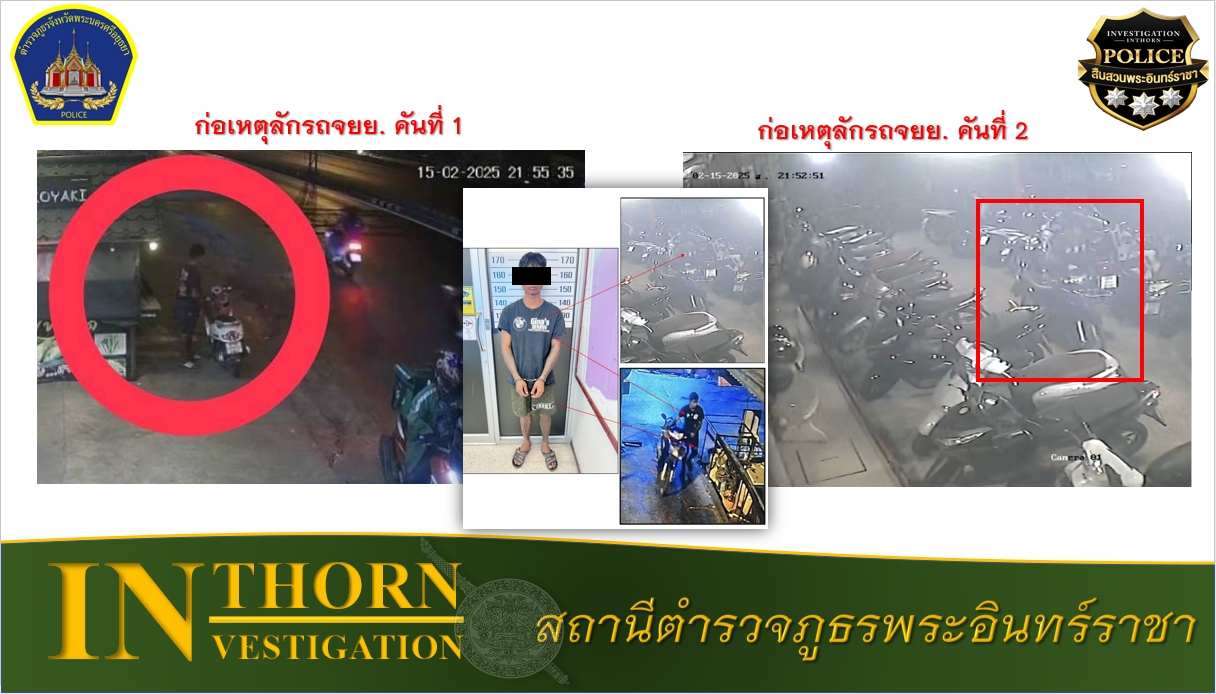 จอดรถจักรยานยนต์ไม่ล็อคคอ คล้องโซ่ ถูกคนร้าย ลักไปคืนเดียว 2 คัน เคราะห์ดีที่คนร้าย ไม่สามารถสตาร์ทเครื่องยนต์ติด…. ถูกตามรวบเสียก่อน